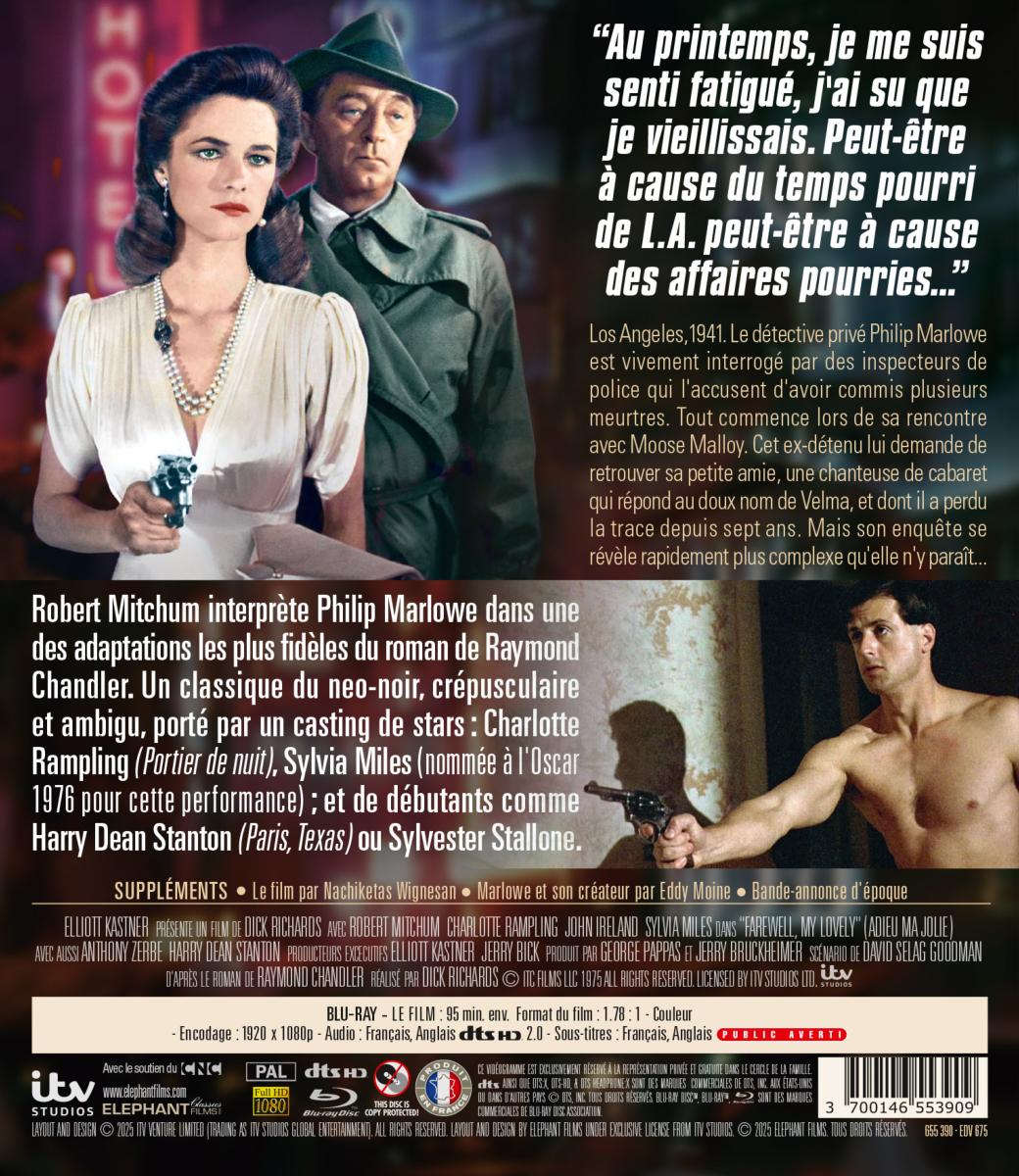 Robert Mitchum interprète Philip Marlowe dans une des adaptations les plus fidèles du roman de Raymond Chandler. Un classique du neo-noir, crépusculaire et ambigu, porté par un casting de stars : Charlotte Rampling (Portier de nuit), Sylvia Miles (nommée à l'Oscar 1976 pour cette performance) ; et de débutants comme Harry Dean Stanton (Paris, Texas) ou Sylvester Stallone.